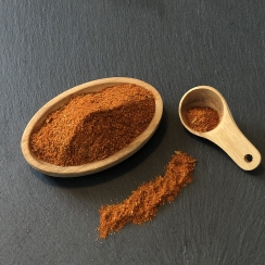 Ingredienser: Paprika edelsüss, løg, hvidløg, cayenne, oregano og timian.