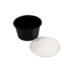 Plastbakke, rund, 450ml, med låg, sort, PP