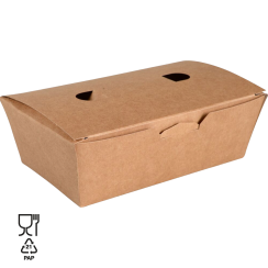 Produktbeskrivelse: En funktionel boks der kan bruges til al slags takeaway. Boksen er designet med ventilhuller, så dampen fra den varme mad kan trænge ud. Det gør blandt andet, at du kan levere lækre, sprøde pommes frites, som ikke er blevet bløde af kondens under transporten.