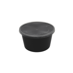 Plastbakke, rund, 450ml, med låg, sort, PP